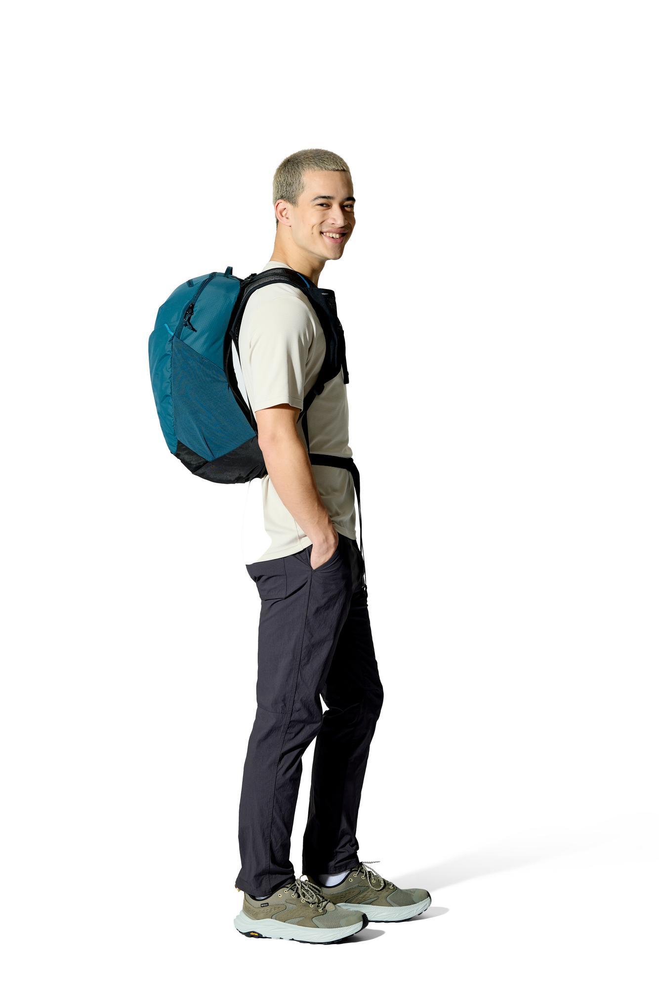 Žiadny výstup nie je zadarmo. Strmá stezka, kamene pod nohami – a aj letná páľava je súčasťou hry. V britskom Derbyshire preto tento turistický batoh vybavili chrbtovým systémom, ktorý vetrá rovnako intenzívne, ako sa slnko opiera do tvojej šije. Pružná sieťovina prilieha k telu a rozkladá hmotnosť – medzi chrbtom a batohom však zostáva voľný priestor, vďaka ktorému teplo odchádza a čerstvý vzduch prichádza. Znížený profil posúva ťažisko nákladu bližšie k telu, takže sa môžeš štverať, kam ťa napadne – batoh bude stále sedieť na svojom mieste. A s odolným ripstopovým materiálom sa pokojne nechaj zlákať aj medzi skalné steny. Spolu vydržíte. Drinu, horúčavu, všetko.